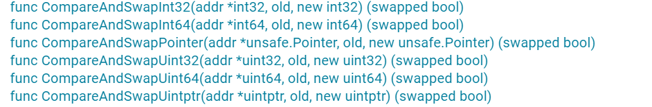 func TestAtomicCAS(t *testing.T) { var numInt32 int32 = 111 atomic.CompareAndSwapInt32(&numInt32, 111, 222) fmt.Println(numInt32)