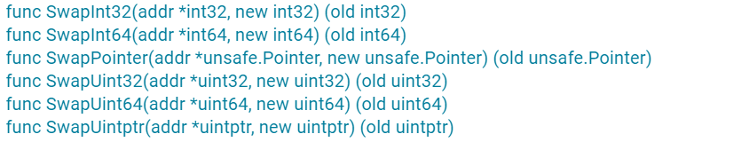 atomic.SwapInt32(&numInt32, 333) fmt.Println(numInt32)